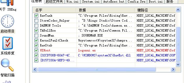 以上两行是与我的注册表中的对比第一行是你的注册表中的键值,它是错误的,所以能应在这个路径中找到“C:\Program Files\Logonui\”里面的“Royale.exe”这个文件,将它删除,我在35楼已给出了正确的它的键值了,按照35楼给的值修改即可了或将下面的保存来修改也可