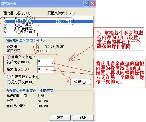 这样是它多占用了磁盘空间啊?浪费了磁盘空间啊?可鼠标指到“我的电脑”击右键→“属性”→“高级”→找到设置“虚拟内存”那里,参见下面操作
