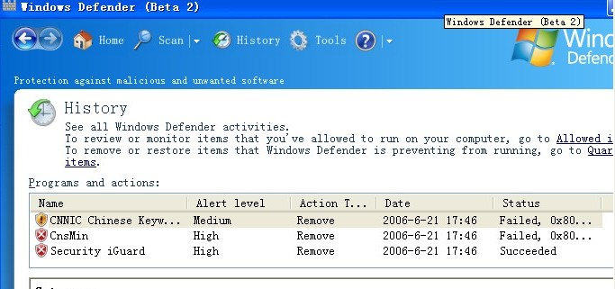 到微软官方网站下载Windows Defender 它可以帮助你除掉"CNNIC中文上网"