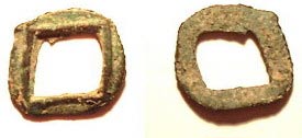 12 戰國秦半兩: 出現於秦始皇統一中國之前的秦國, 藏品仍待鑑定。