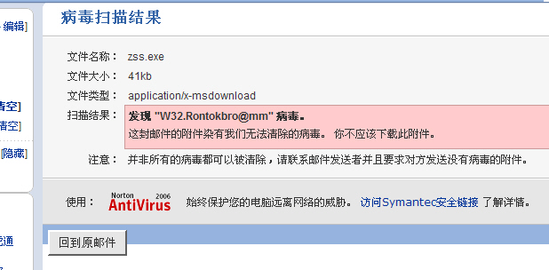 估计邮箱的诺顿会发现那是病毒文件而不让我下载。