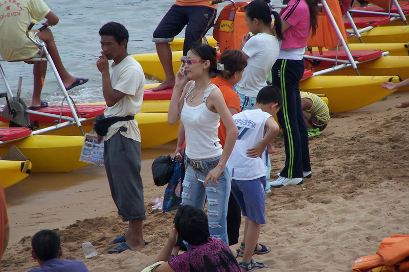 既然青岛这么受欢迎我就在补张图吧!注意后面的水上自行车、细腻平坦的沙滩和贪心的商贩们!