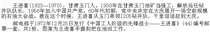 《中国工人阶级的先锋战士——王进喜》编号邮票