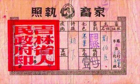 家畜执照,1951年。这匹骡子的“身份证”比如今人的身份证上所承载的信息还全面。