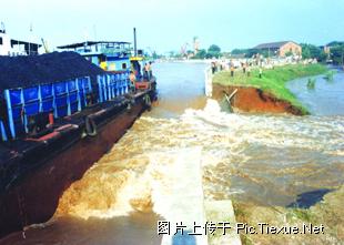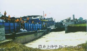 甲21025号煤驳成功堵住决口,为部队堵口合龙提供了坚实的平台和依托