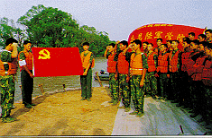 南昌陆军学院3名突击队员在抗洪大堤上火线入党。