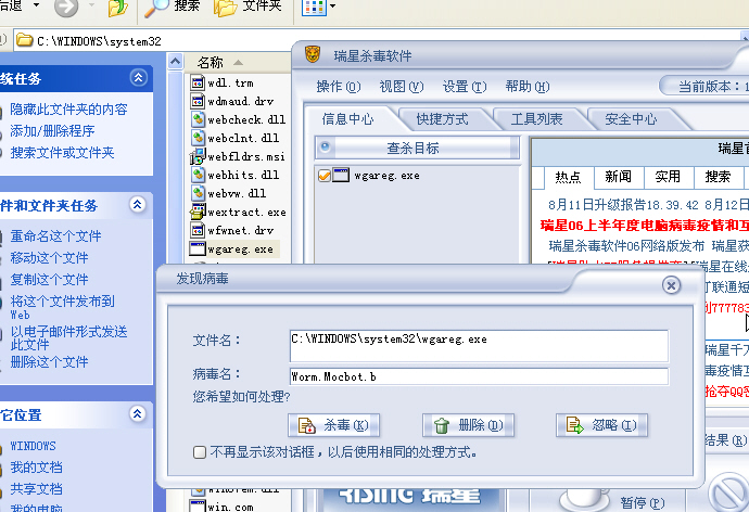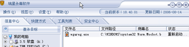 SSM(2.2.0.583)、瑞星(18.40) 与“魔波”蠕虫(wgareg)