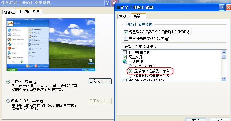 开始菜单里的连接没有了~~ 怎么能给弄出来?