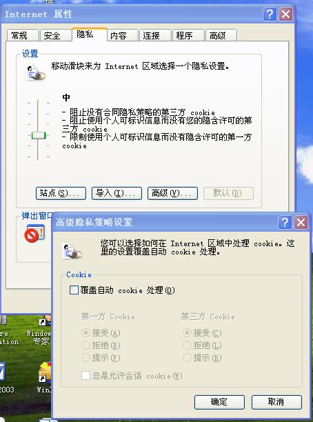 【求助】装了SP2如何设置浏览器接受COOKIES?