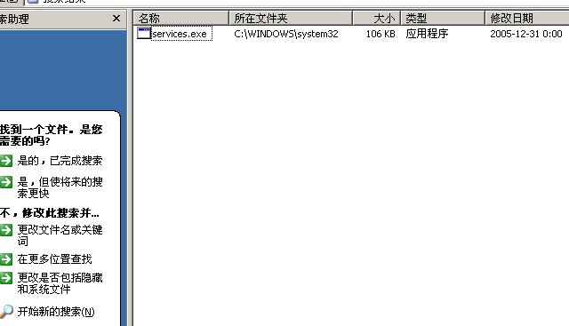 还有就是我用"开始"的"搜索"查到C:\WINDOWS\system\services.exe