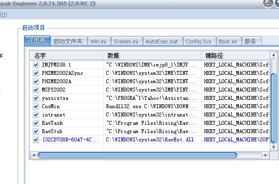 双击System Repair Engineer,使用“启动项目,注册表”来删除以下选项
