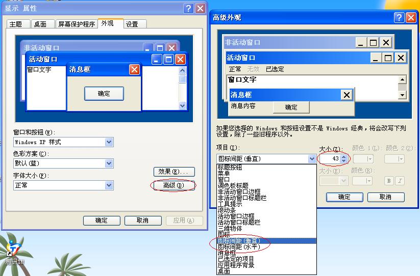 hkey_current_user\control panel\desktop\windowmetrics下的iconspacing和iconverticalspacing,两个键值用于设定图标的水平和垂直间距,其绝对值越大间距越大。