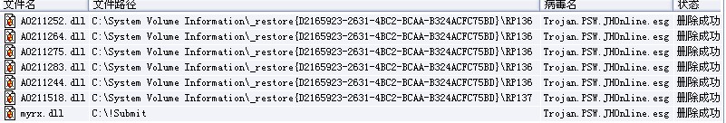 这是我按照你教的方法后杀毒的结果,感谢你的帮助,再问个问题,这些病毒删除成功就等于杀毒了是吧,前6个病毒是在一个什么文件夹里?那个文件夹是起什么作用的?谢谢,还有,你能教教我怎么装系统吗?不是外面4快一张的那种盘,是正版的系统盘,在那种蓝屏下安装的那种,谢谢了~如果不方便的话就算了~再次感谢你