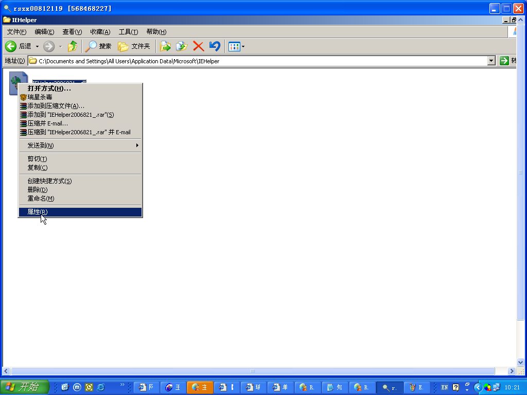 步骤3、当出现IEHelper*.dll文件无法删除时,在文件所在处点击右键选择“属性”。