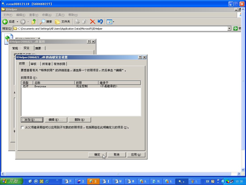 步骤6、设置正确后的文件权限将显示如下图,请点击“确定”后保存。