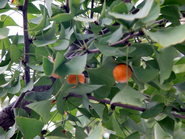 第一次看到挂在枝头的银杏果!