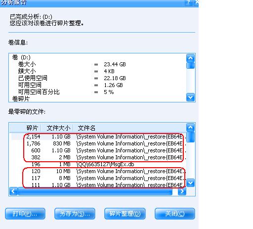 【咔咔de危急的贴子】D盘共有23GB!现在只剩下1.49GB,总共下了3个游戏在里面!一个131MB,一个98MB,一个140MB! 其他空间去那里拉?高手指点哈!!!应该怎么把空间在弄回来?