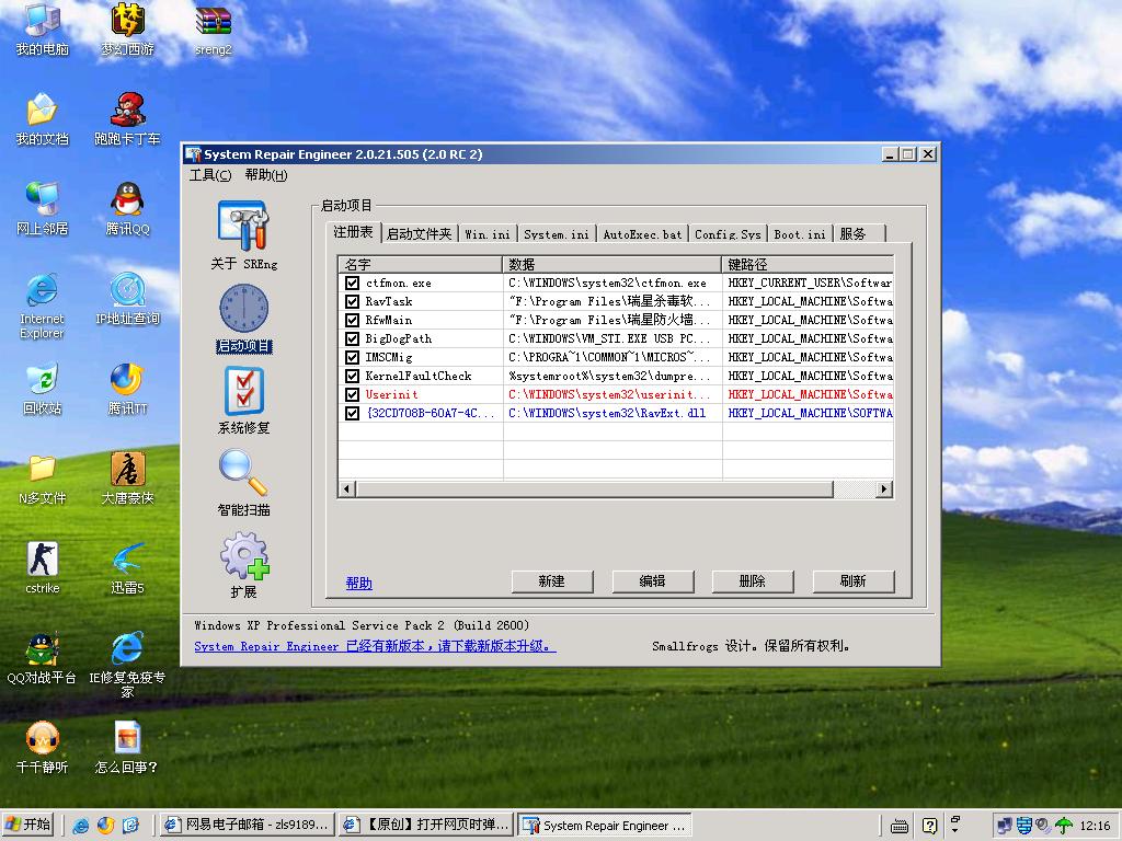 所有的启动项目(包括注册表、启动文件夹、服务等)