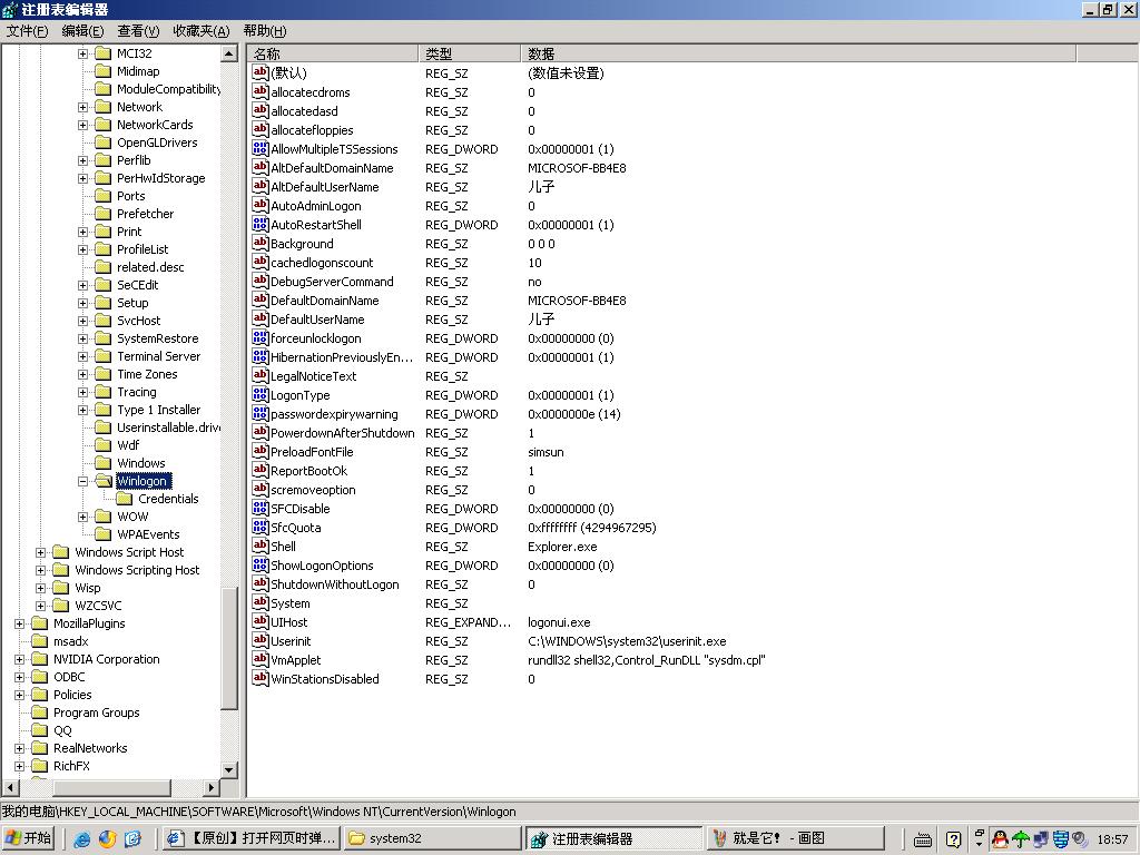 [HKEY_LOCAL_MACHINE\Software\Microsoft\Windows NT\CurrentVersion\Winlogon]