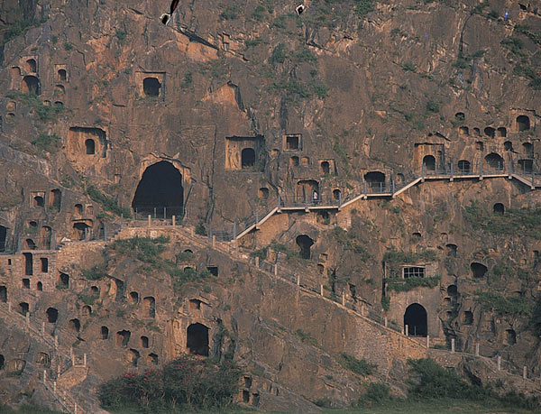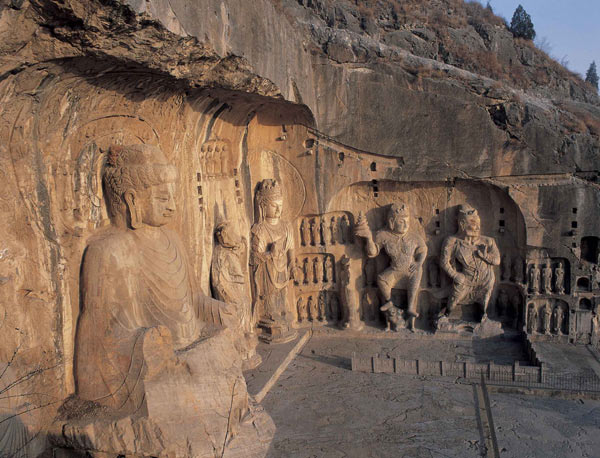北魏从大同就开始凿窟造像,迁都洛阳后,又找到了一处凿窟造像的有利地形,那就是洛阳城南的伊阙。伊水两岸的山崖石质坚硬、细致,很适合于造像,结果在这里出现了名叫龙门的石窟群。