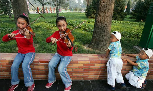 8,在北京的双胞胎节日上,一对双胞胎姐妹在表演节目。这次有500对双胞胎参加活动。(10月2日)