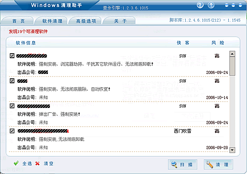 系统维护的瑞士军刀,完全免费,不含第三方插件与广告。共可以清除300余种插件,IE插件,广告软件和其他一些软件。