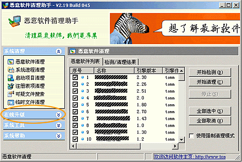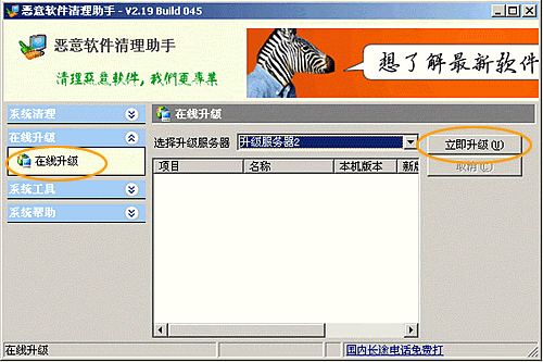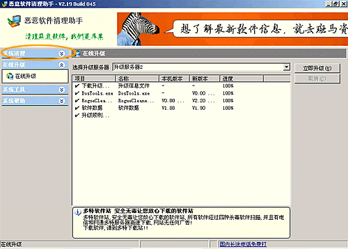 2、双击进入后出现软件主界面,点击界面左侧“在线升级”选项卡。