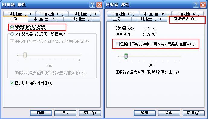 为何将C盘以外的任一文件删除,就直接删除掉,而不能进入回收站呢.