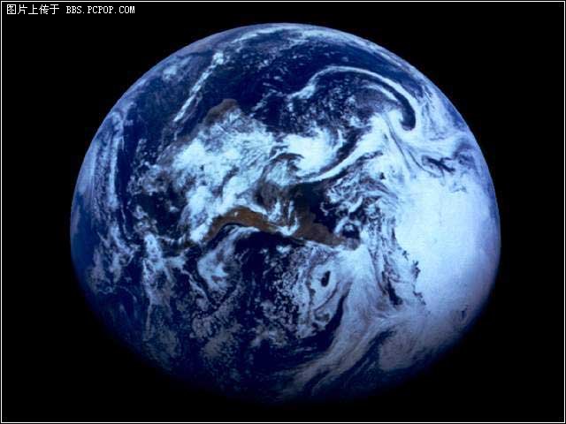 地球(我們的家園)  地球這顆有著廣闊天空和藍色海洋的行星始終給人以堅實巨大的感覺。而在宇宙中,地球給人的印像卻並非如此:這個在一層薄薄而脆弱的大氣籠罩下的星球並不見得有多大。在太空中,地球的特征是明顯的:漆黑的太空、藍色海洋、棕綠色的大塊陸地和白色的雲層。地球是太陽的從裡往外數第三顆行星,距太陽大約有