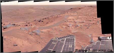 圖為美國宇航局2005年9月1日公布的“勇氣”號火星車8月23日從火星“赫斯本德山”峰頂拍攝的火星沙漠全景照片。照片上的火星沙漠與地球沙漠極其相似,而火星車所在的山頂,似乎是一片風化台地,布滿了碎石、沙堆和暴露岩層。項目科學家表示,這些壯觀的照片將成為分析火星滄海桑田變遷的重要線索。