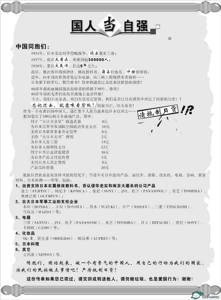 继“朝日啤酒”在长春某大型连锁超市遭撤柜后,沈阳一超市抗议日本篡改教科书 数十商品全撤柜