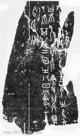 甲骨文,是商代(公元前1400)的文字。这些文字因为刻在兽骨或龟甲上,故名甲骨文。文字是以契刀刻划的,故又名"契文""契刻"。文字的内容,除极少数属於记事外,大部分是属于当时王公问卜的记载,故又称"卜辞"或"占卜文字"。此外,因甲骨文字出土的地方在河南省安阳县(原是殷代故都),所以又称为"殷墟文字"。严格地讲,只有到了甲骨文,才称得上是书法。因为甲骨文已具备了中国书法的三个基本要素:用笔,结字,章法。而此前的图画符号并不全有这三种要素。