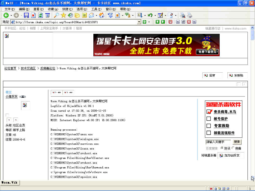 Worm.Viking.dr怎么杀不掉阿,大侠帮忙阿