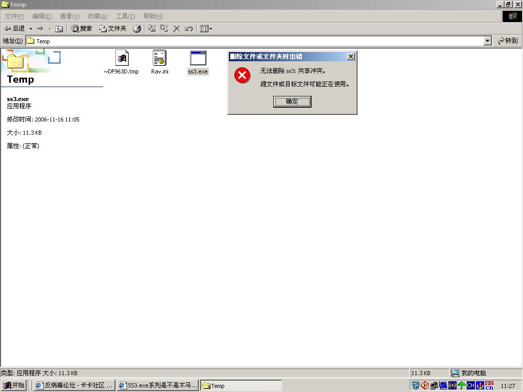 我发现在IE打开情况下,无法删除SS3.exe 有IE共享。