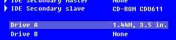 A:这是软驱设置。你看,这台电脑只有一个1.44M软驱,后面的“3.5in”表示这种软驱使用3.5寸的软盘,当然现在装软驱的也没几个了