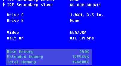 最下面列出了内存的大小,我们不用管前两项,只需留意一下最后的这项"Total Memory"的大小就可以了,即这台电脑上内存总量,看看是不和你安装到电脑上的内存大小符合