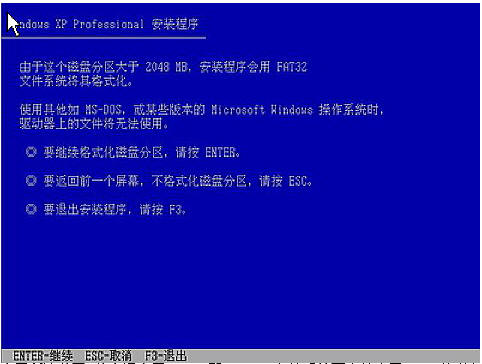 格式化C盘的警告,按F键将准备格式化c盘,出现下图所示