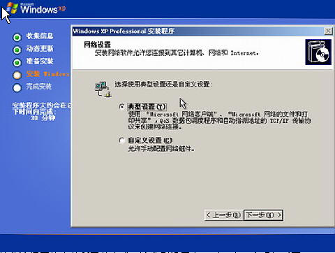 开始安装,复制系统文件、安装网络系统,很快出现如下图