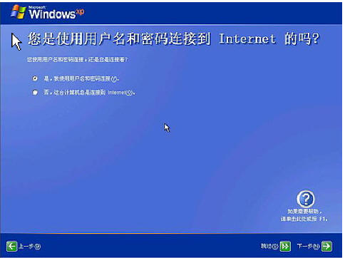 目前使用的电信或联通(ADSL)住宅用户都有帐号和密码的,所以我选“是,我使用用户名和密码连接”,点击“下一步”按钮,如下图