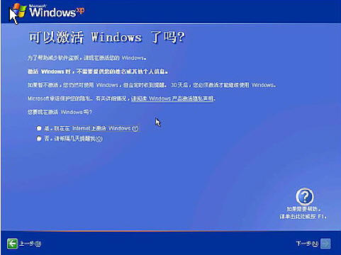 已经建立了拨号连接,微软当然想你现在就激活XP啦,不过即使不激活也有30天的试用期,又何必急呢?选择“否,请等候几天提醒我”,点击“下一步”按钮,(大家现在一般用的版本都是免激活的,所以这一项不会出现)如下图