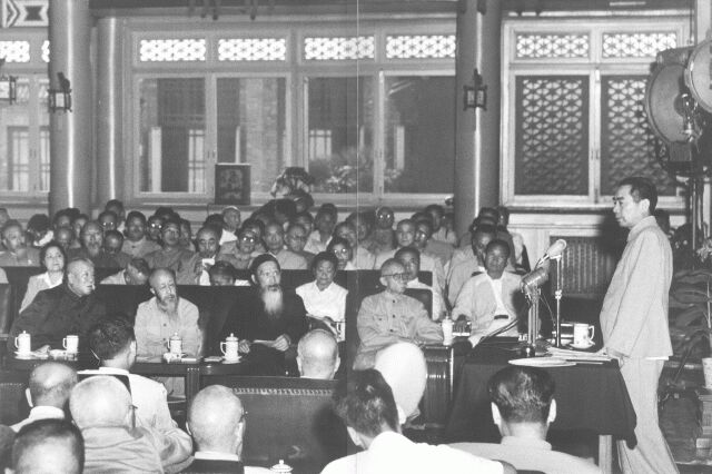 1954年,朱德、毛**、陈云、周恩来在中南海紫光阁。