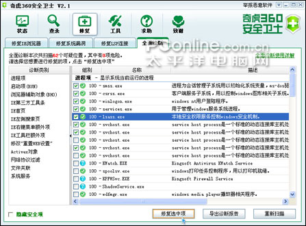 名称、对应进程名称、安装状态、详细介绍和建议的处理方式等
