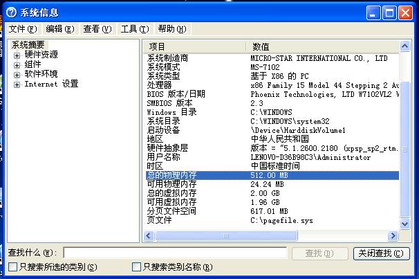 晕 哦 我的实际内存是256 用你给的命令看 也是256的 但在系统信息里看显示的512MB