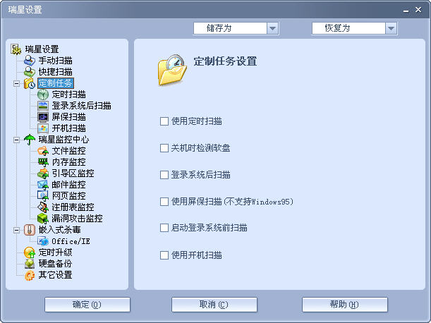 定制选项里哪些是需要的?比如开机扫描,登陆扫描,定时扫描之类的