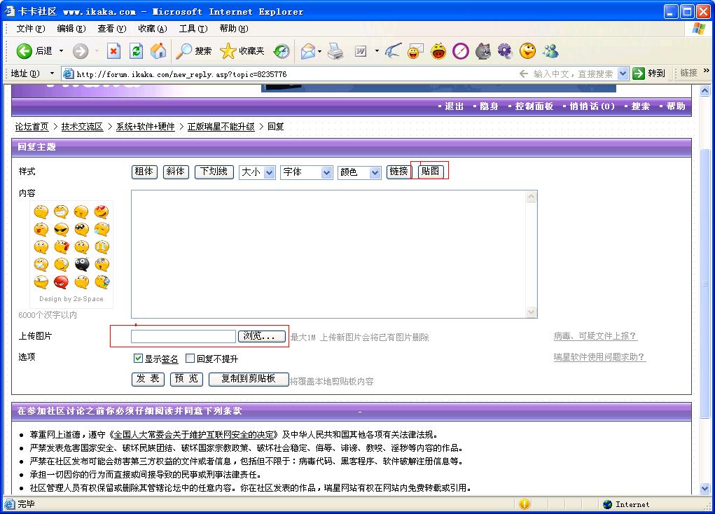 请问楼上的,和知道的,小弟我想知道,在瑞星BBS上怎么发图?