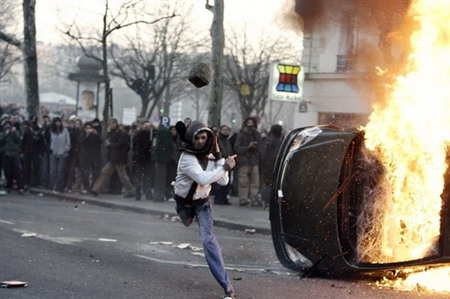 2006年2月5日,一名穆斯林牧师在丹麦驻贝鲁特大使馆外抗议。