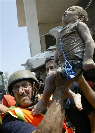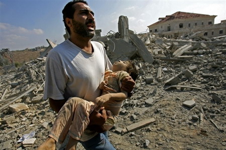 2006年7月20日,以色列军队袭击加沙中部地区的Al-Maghazi难民营后,一名满身是血的巴勒斯坦男孩躺在急救室中。