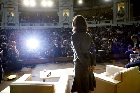 2006年10月22日,法国中间偏左社会党女候选人罗亚尔在辩论会后让记者拍照。