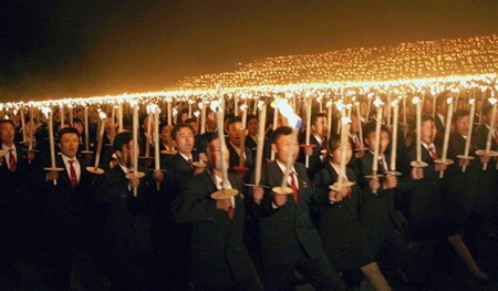 2006年10月18日,朝鲜首都平壤,朝鲜青年集会纪念打倒帝国主义同盟80周年。