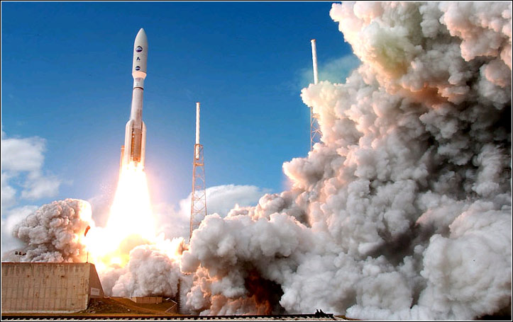 1月19日,Atlas 5火箭从美国佛罗里达州卡纳维拉尔角升天,这枚火箭上的航天器将飞向冥王星进行探索活动。(国际在线独家资讯 付华一)